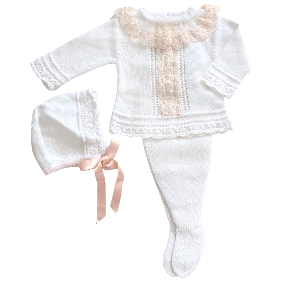 Tinny Newborn Three Piece Outfit (White/Petal)