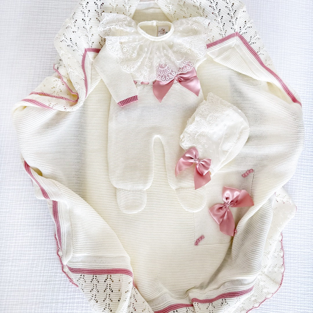 Romana Jumpsuit Deluxe Set Outfit + Blanket (Dusty Pink/Ivory)
